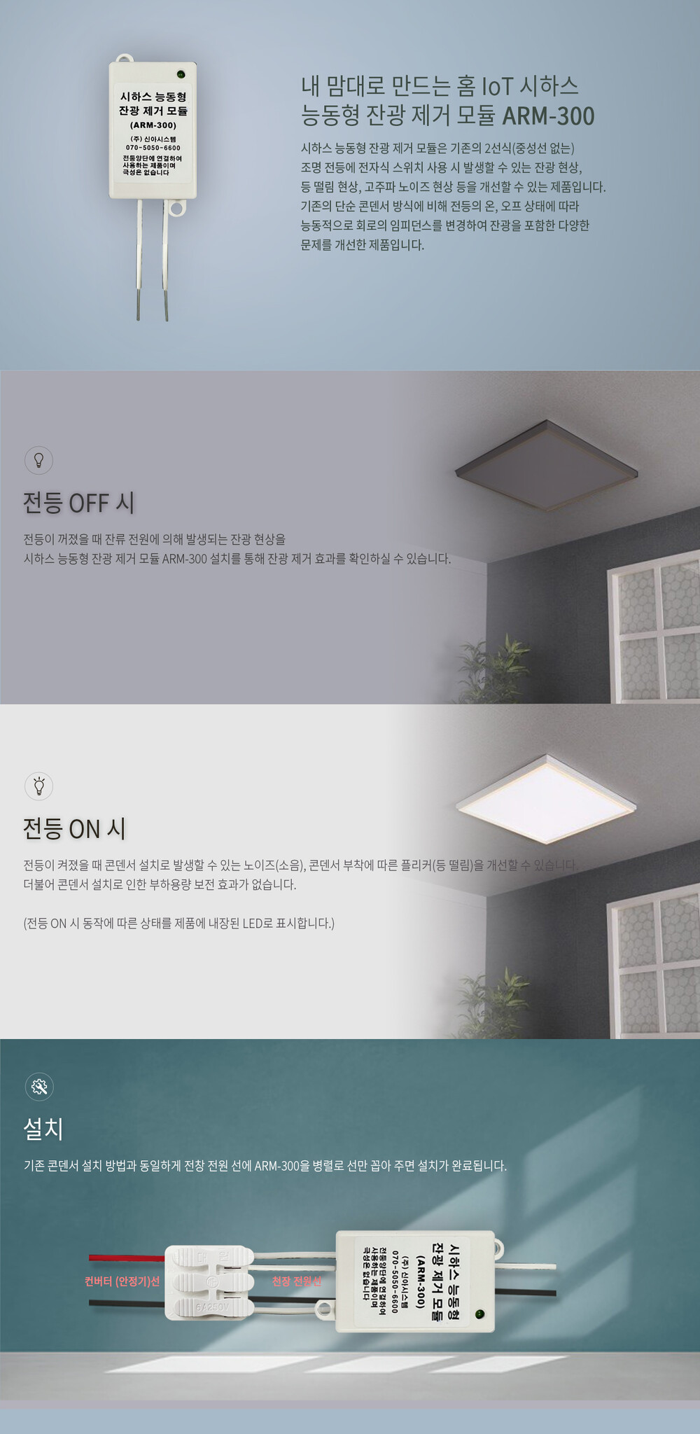 능동형 잔광 제거 모듈 ARM-300 (2선식 중성선 없음 전용)