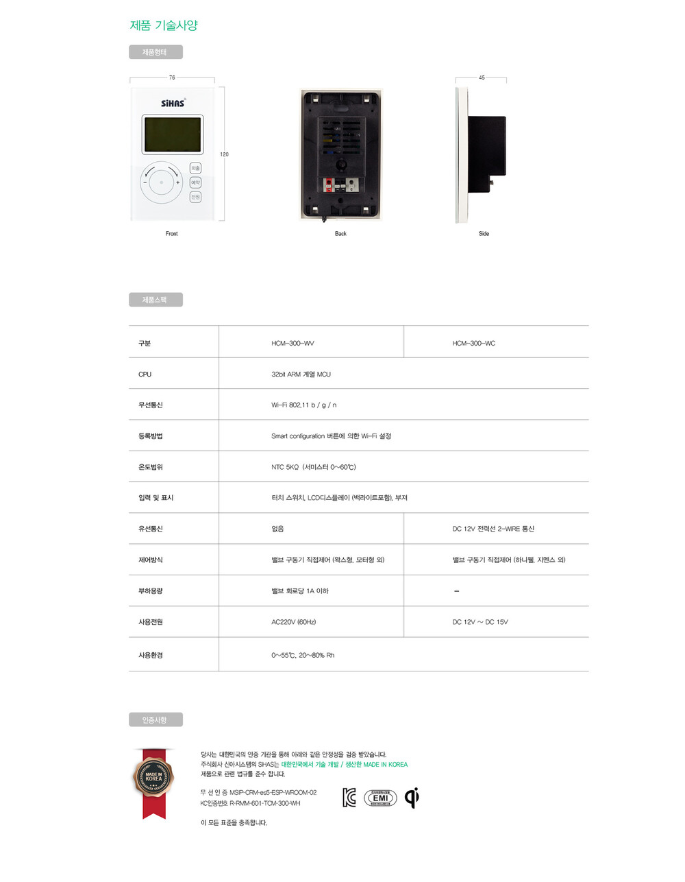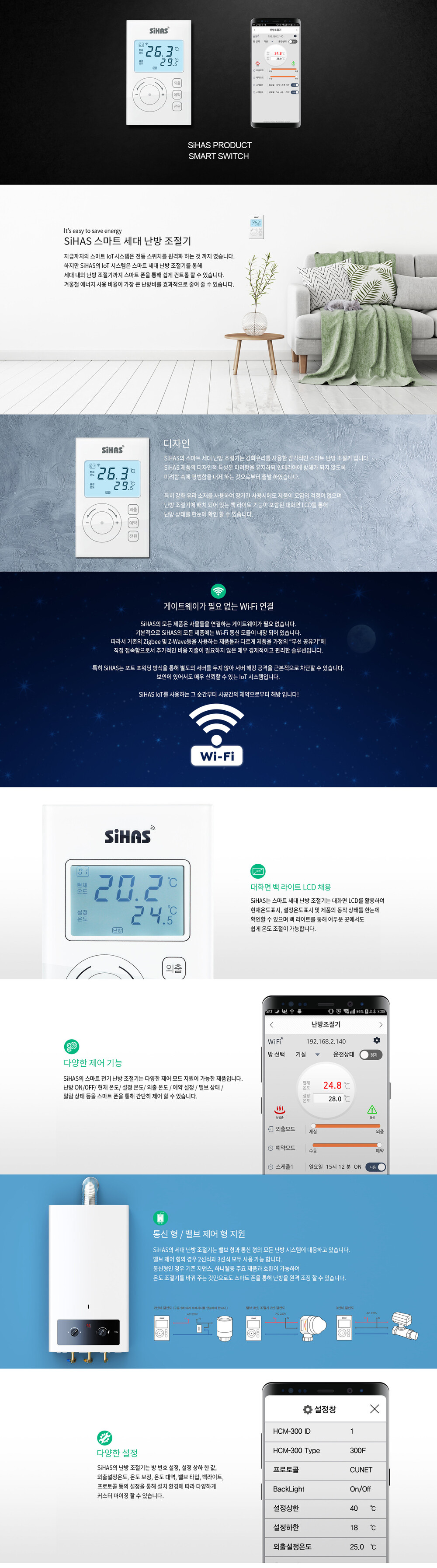 스마트 벨브제어 난방 온도조절기 HCM-300-WV 3선식