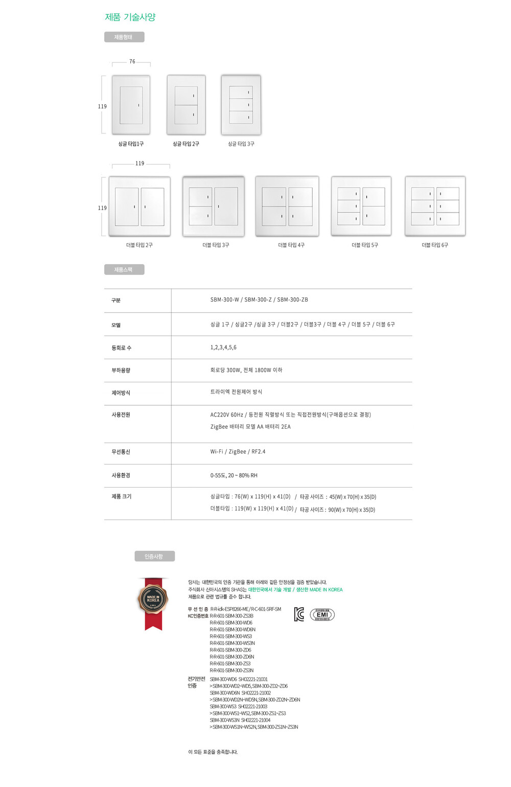 스마트 버튼형 조명 스위치 SBM-300-W/Z